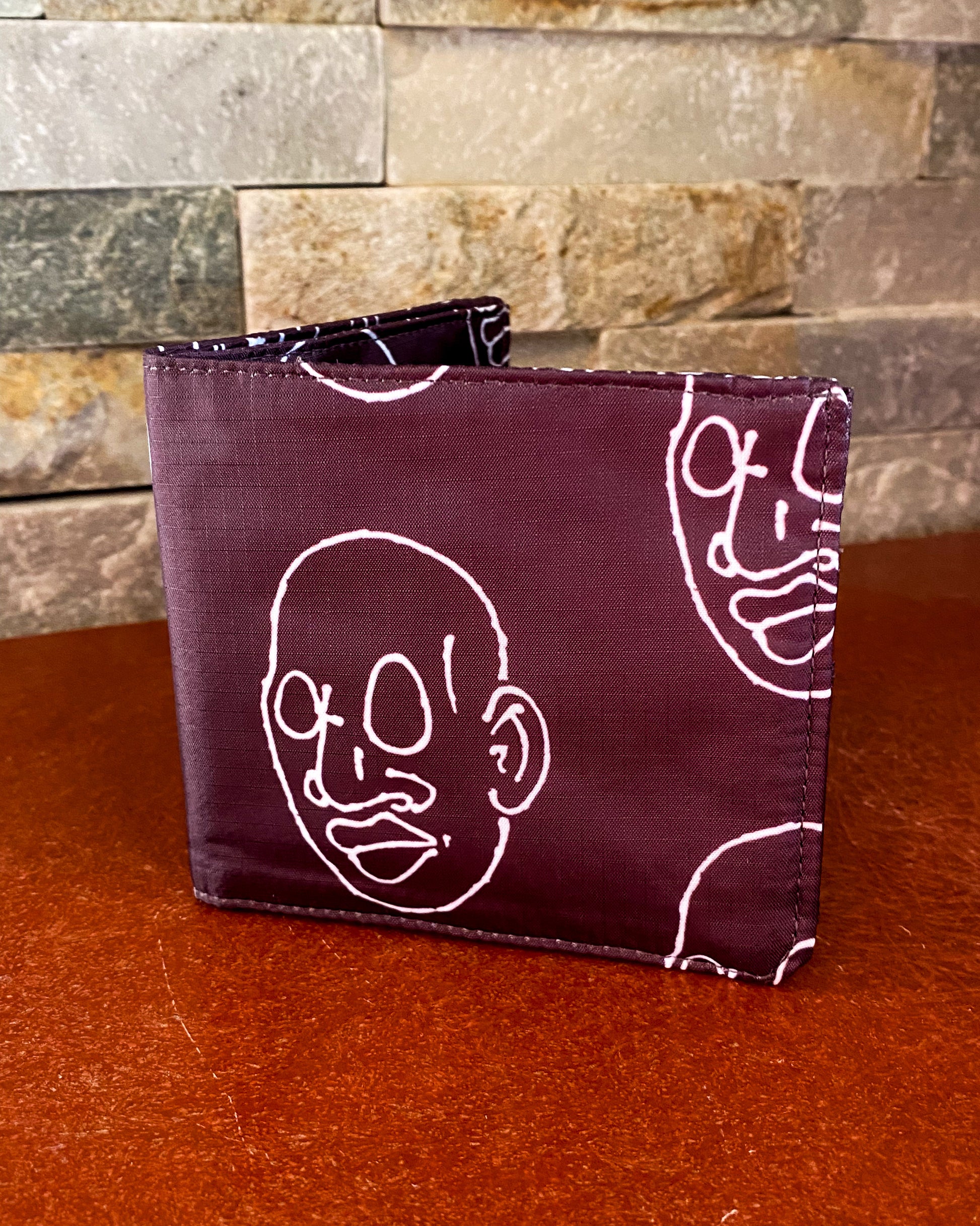 Bifold Ripstop Wallet, Mr. Voorhees Brown and White Signature Face