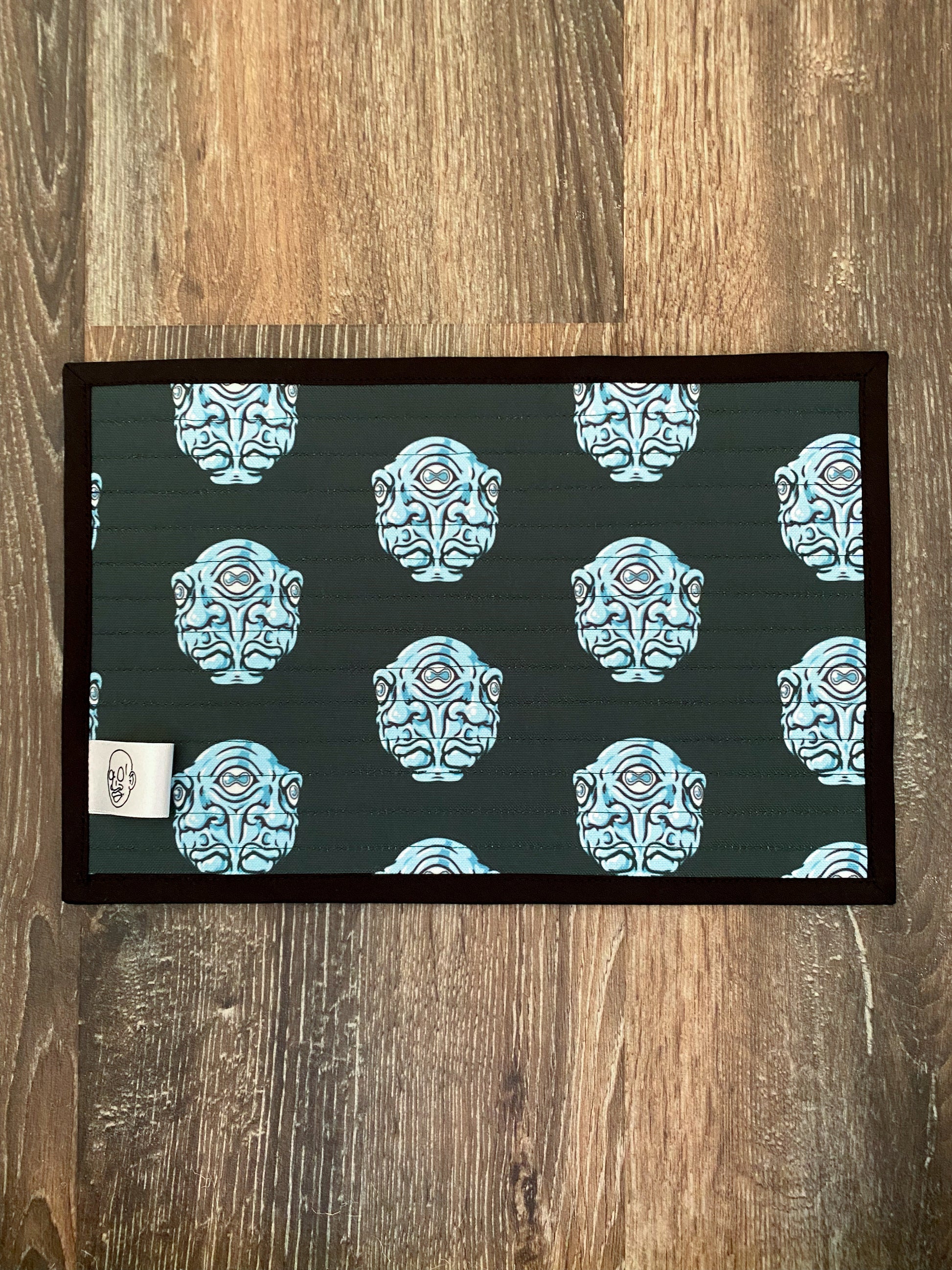 These are medium 11 x 8 inch (give or take 1/4 inch) Mr. Voorhees mats. Each mat is quilted and features a signature Mr. Voorhees tag. The backside of these mats are solid black canvas. Please select your desired mat above.