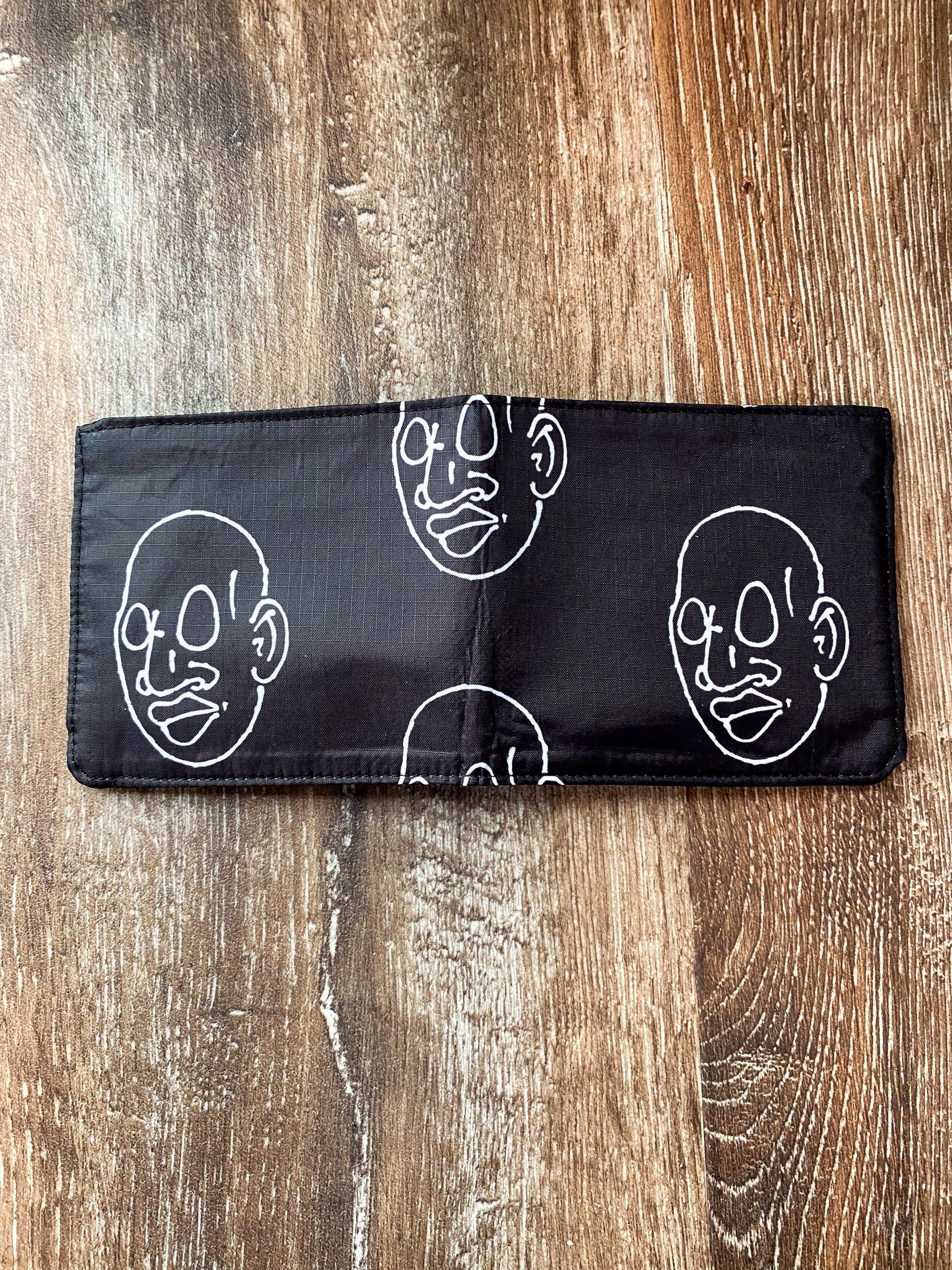 Bifold Ripstop Wallet, Mr. Voorhees Black and White Signature Face